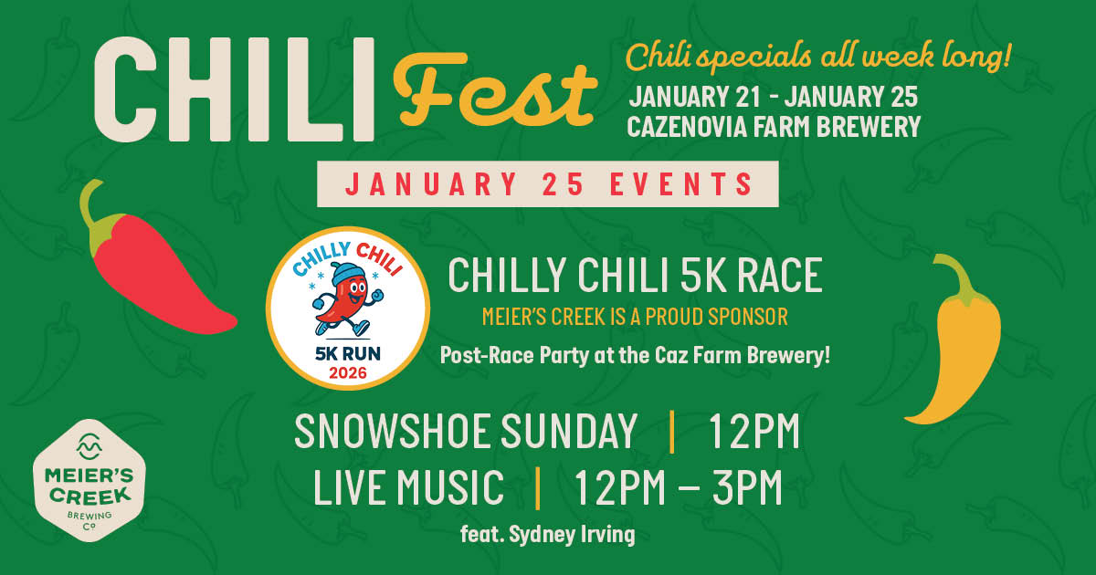 The day kicks off with the Chilly Chili 5K Race (Meier’s Creek is a proud sponsor!). Runners and supporters are invited to keep the party going with a post-race celebration at the Caz Farm Brewery—because nothing pairs better with a finish line than chili and a cold beer 🏃♂️🍻