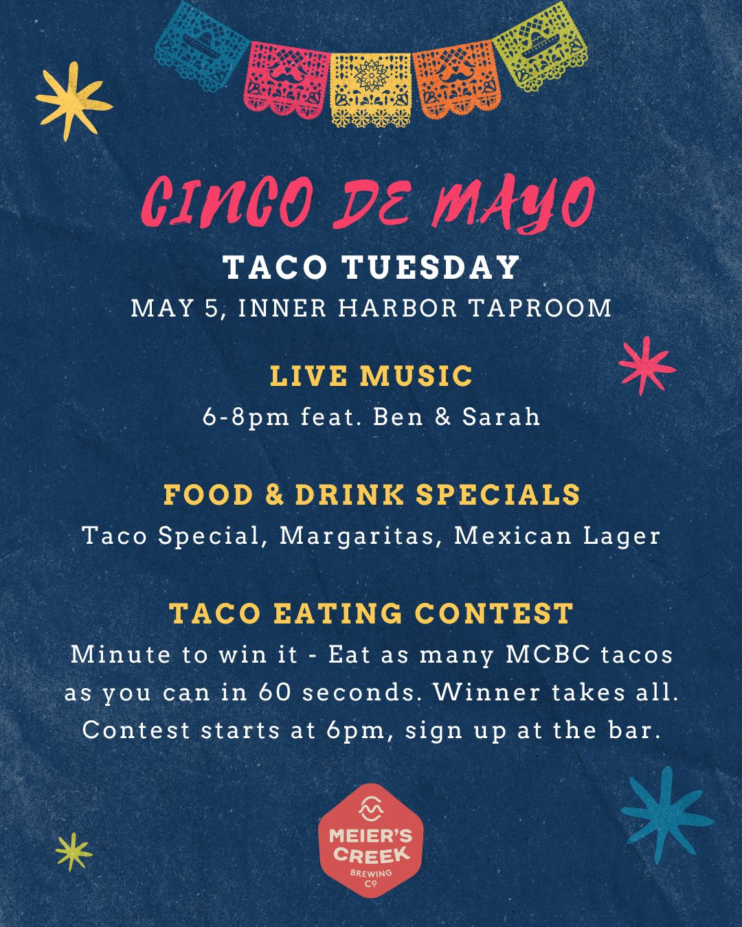 We’re turning Taco Tuesday into a full-on fiesta! Join us at our Inner Harbor Taproom for a Cinco de Mayo celebration packed with tacos, margaritas, live music, and a little friendly competition.
