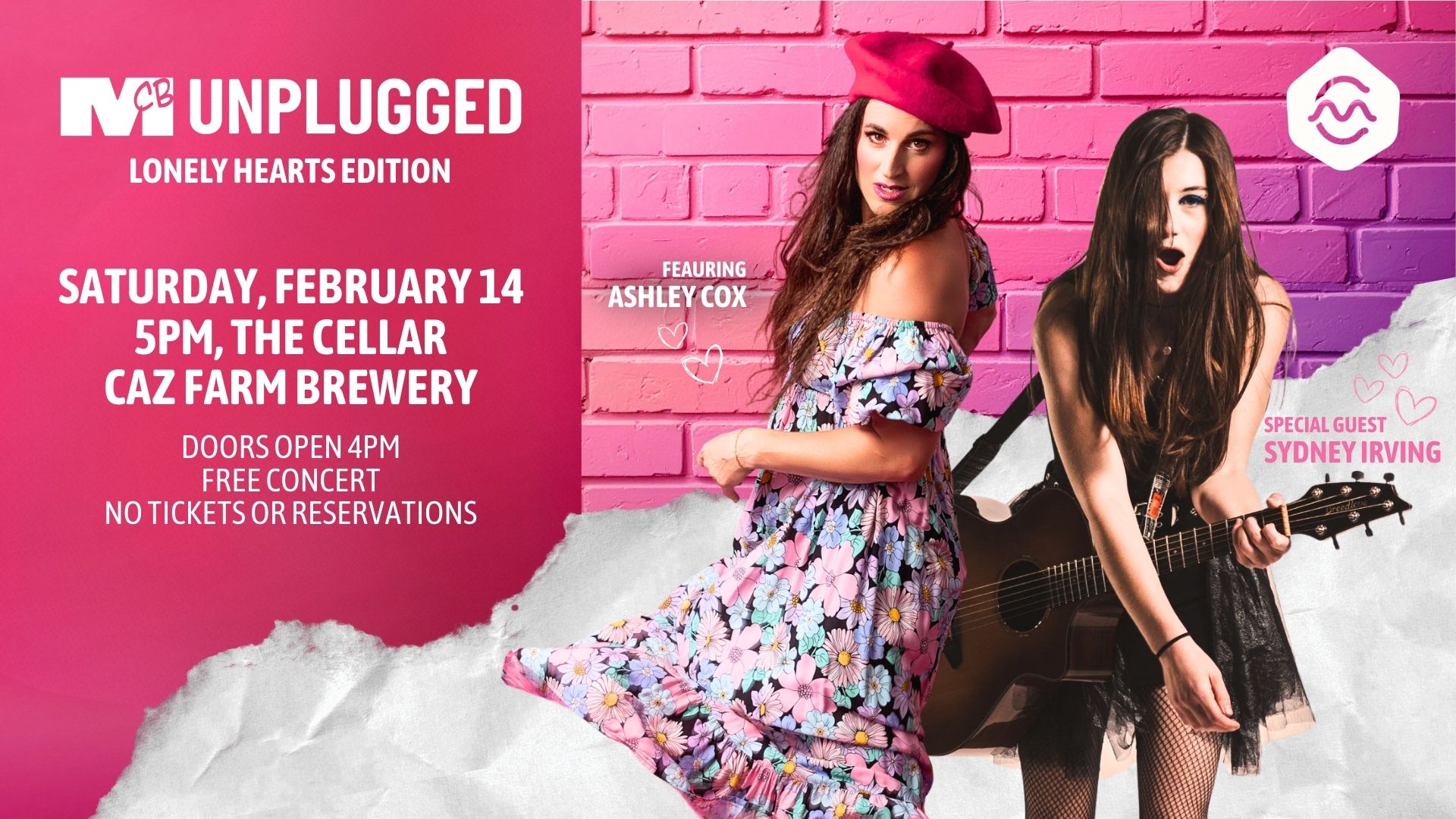 Join us for MCB Unplugged: Lonely Hearts, an intimate, feel-good night of live, unplugged music, great beer, and even better company. Featuring Ashley Cox, Sydney Irving, and maybe a few more 👀💕