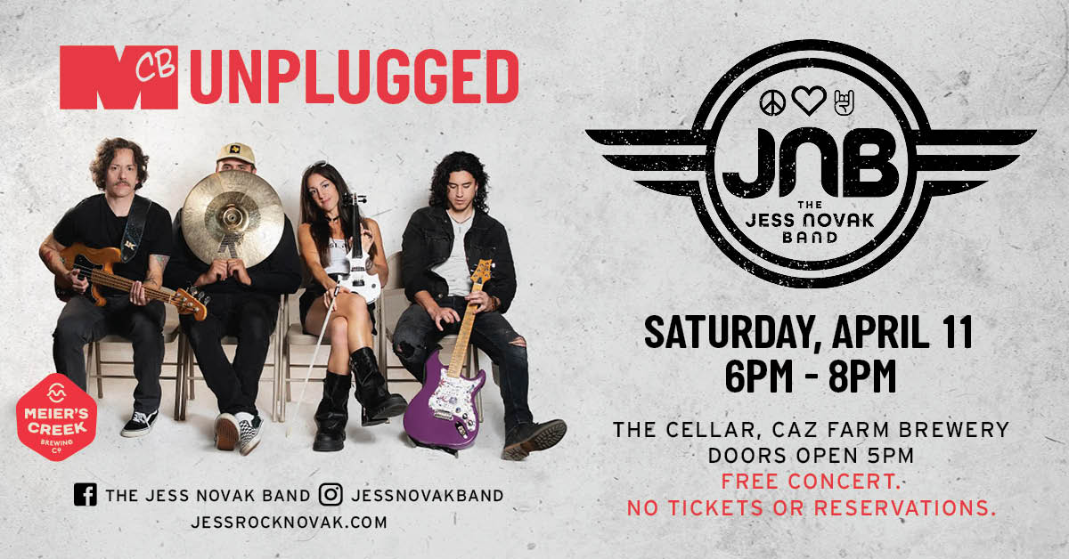 Join us Saturday, April 11 from 6PM–8PM for MCB Unplugged featuring The Jess Novak Band in The Cellar. Doors open at 5PM, so come early, grab a pint, and settle in for an unforgettable acoustic set. Show starts at 6PM!