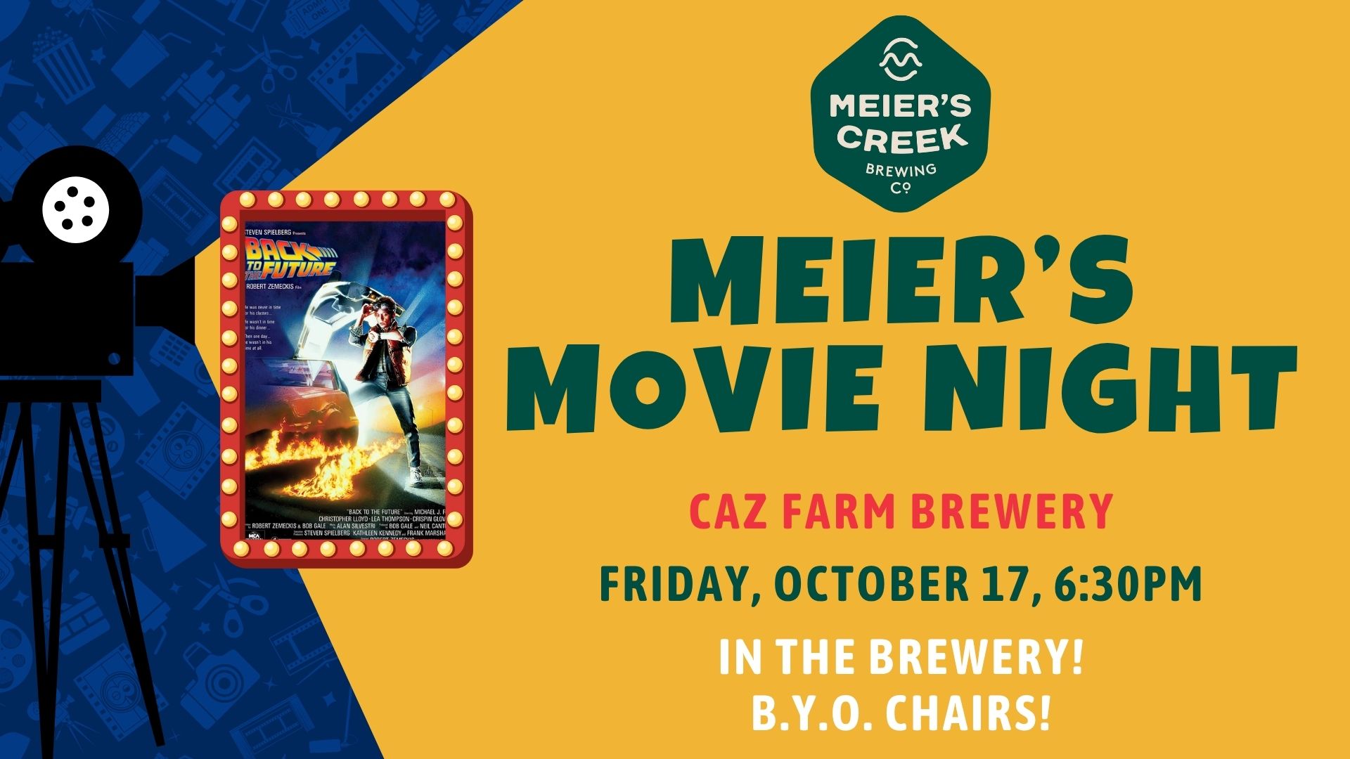 Grab the crew and your favorite brew — it’s Meier’s Movie Night at our Caz Farm Brewery! We’re heading Back to the Future with a screening of this iconic classic right inside the brewery.