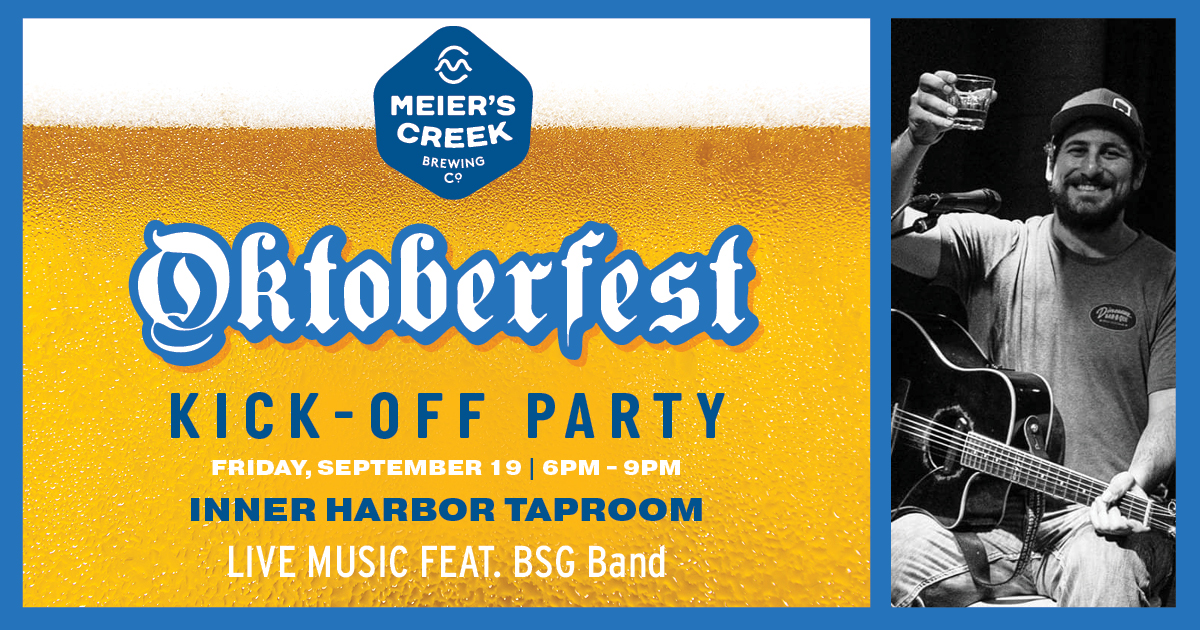 Let’s start the weekend off right with the one and only – BSG Band! That’s right, Ben Blujus and the crew will be performing live, Friday night 6-9pm at the Inner Harbor Taproom, to get the Oktober-festivities started!