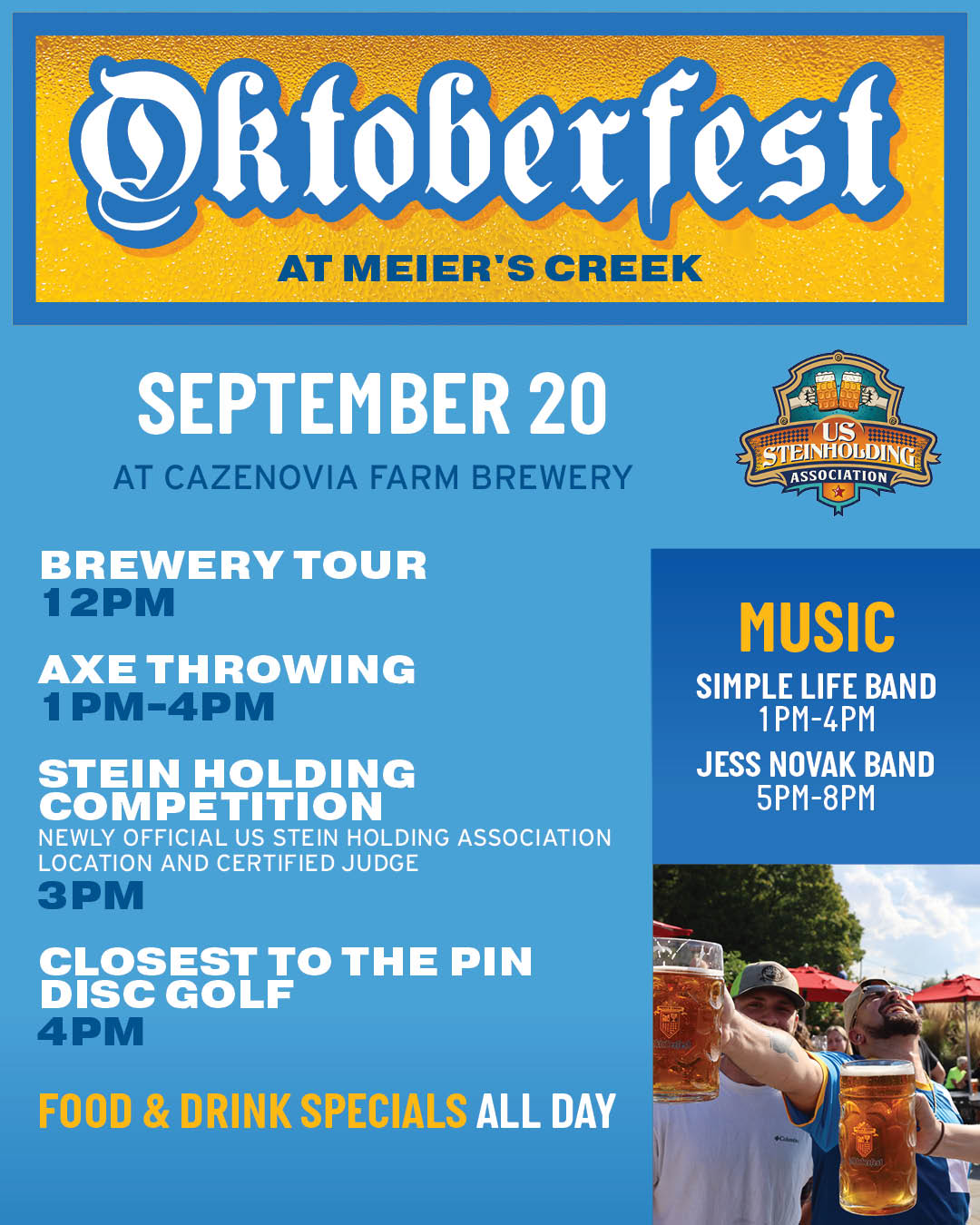 Cazenovia Farm BreweryBring your friends, your competitive spirit, and your thirst for good times—this is the Oktoberfest you won’t want to miss. Ein Prosit!