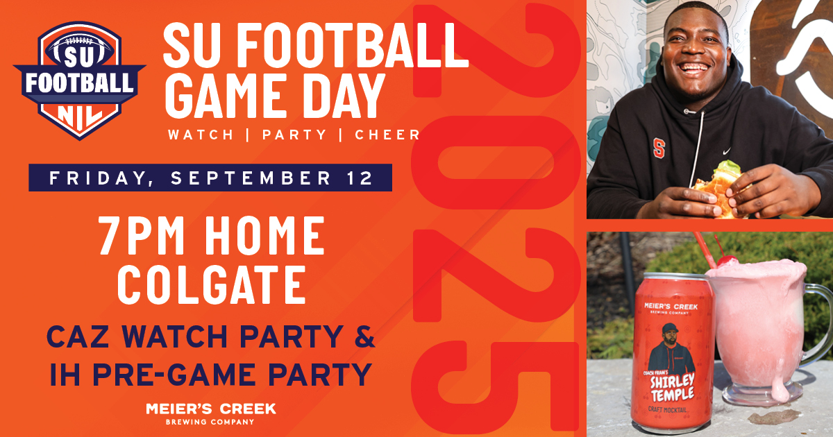 Catch all the excitement of Syracuse football with Wake Up Call Game-Day, hosted by Dan Tortora, broadcasting LIVE on-site at Meier’s Creek Brewing Company – Syracuse Inner Harbor for every 2025 home game! |