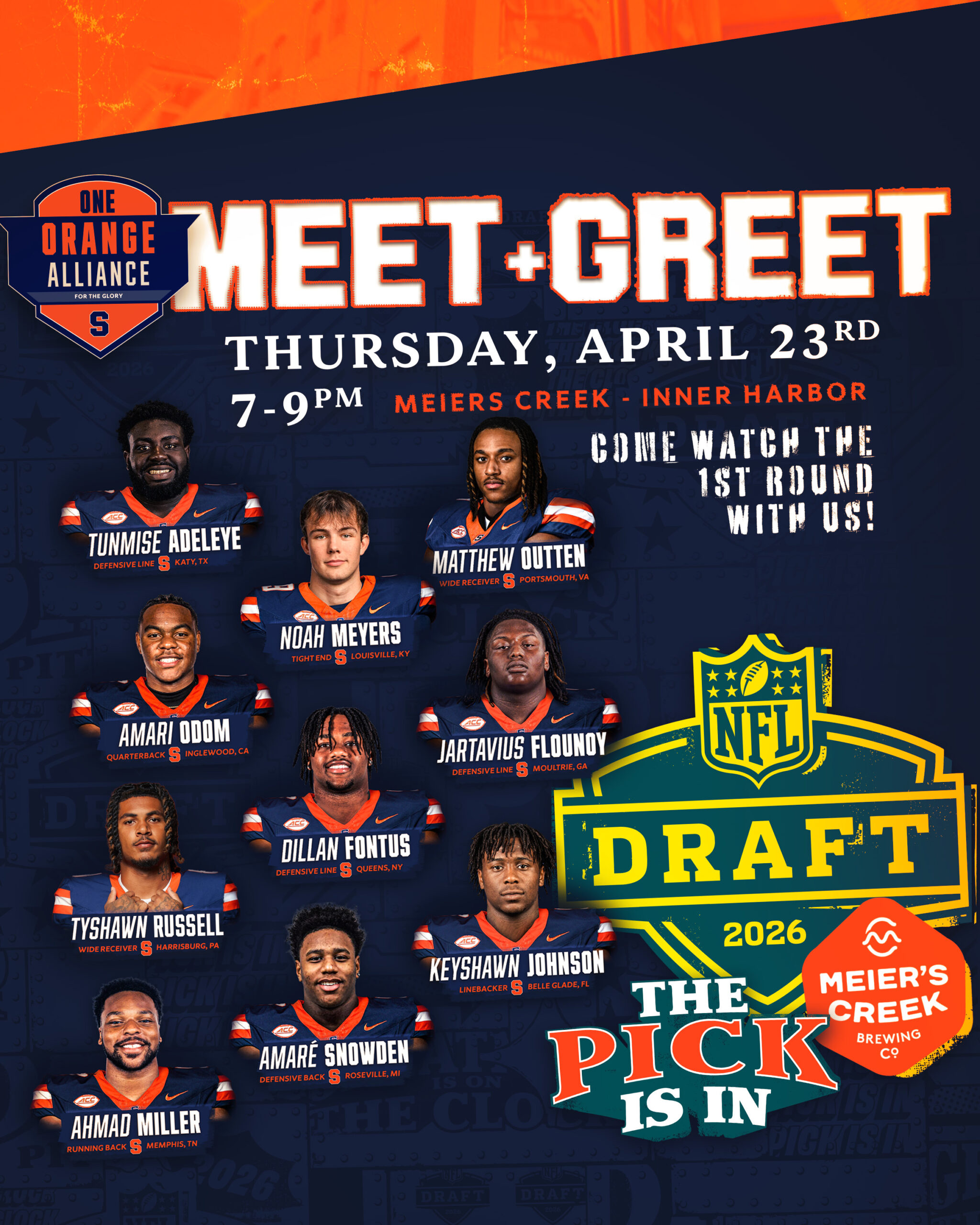 Kick off game day at Meier’s Creek with some serious star power as Syracuse Football standouts take over the taproom!