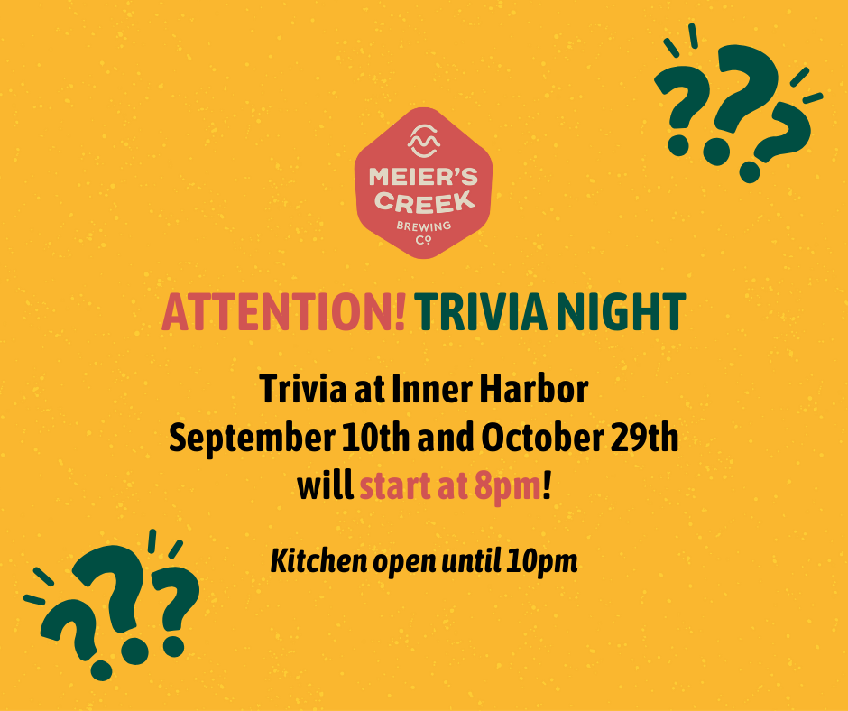 Trivia Night at Meier’s Creek Inner Harbor Taproom – TIME CHANGE