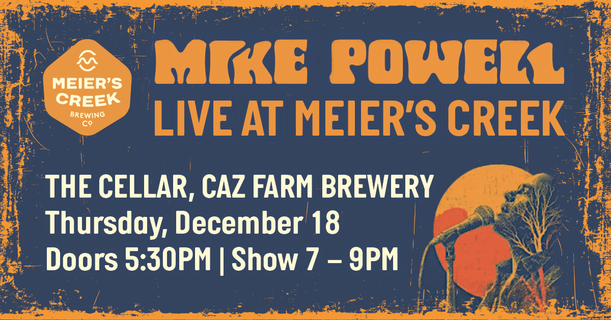 Come hang out at Meier's Creek for a live performance by the one and only Mike Powell!